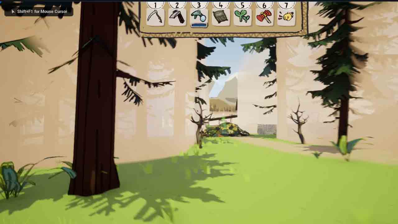 Given that so much of the game revolves around gathering and processing resources, we needed an inventory system to store and manage the game's items. Each item is defined by a row within an items data table with additional information stored in an associated data asset. I set up the inventory to use a grid of item stacks, each item having their own maximum stack count. Items dropped into the world are also stored as stacks and can combine smaller stacks into larger ones if they're close enough.
