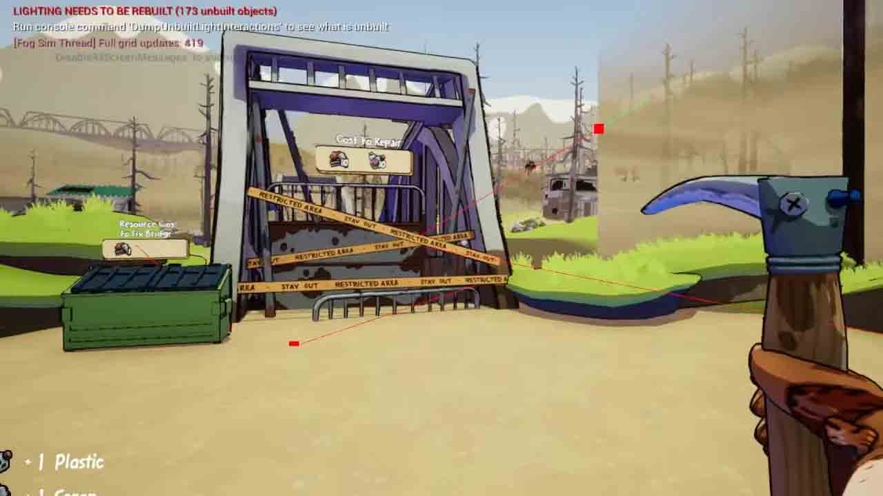 In order gather resources, players and drones find and interact with objects like rocks, bushes and junk piles. As our map grew in size and we added more and more resource actors to the world, these additions began to adversely affect the game's performance. To resolve this, I put together a system that allows our level designers to place such objects as instanced foliage in the level which can then be invisibly swapped for their blueprint actors once interacted with (along with some tools to convert already placed actors to abide by the new system). These actors are then converted back into their foliage instances after a period of inactivity.