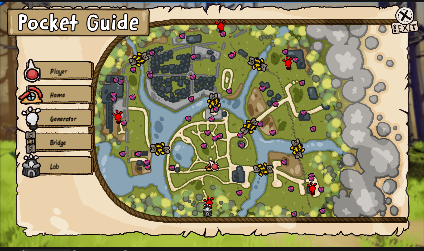 Players have access to five separate regions, each with their own theme. In order to help the player navigate the world I worked with one of our artists to create a map menu that reflects the current position and state of various objects in the level.