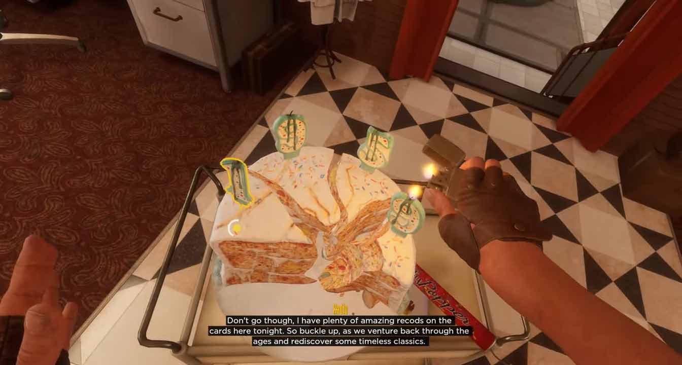 The cake featured at the start of the game is another object I wholly put together. Despite looking quite simple, it actually involves many of the systems developed for the game. For one, the cake can be eaten by being brought close to the player’s face causing it’s meshes to swap out for ones that is progressively more eaten. The candle is a separate item actor that uses our component-based socketing system to attach to the cake piece. The sockets have tag identifiers that ensure only permitted objects can attach together while still allowing any candle to be removed from and placed back into any cake piece interchangeably. Finally, the candles each have a child fire actor that can be ignited or extinguished when overlapped by other fire actors.