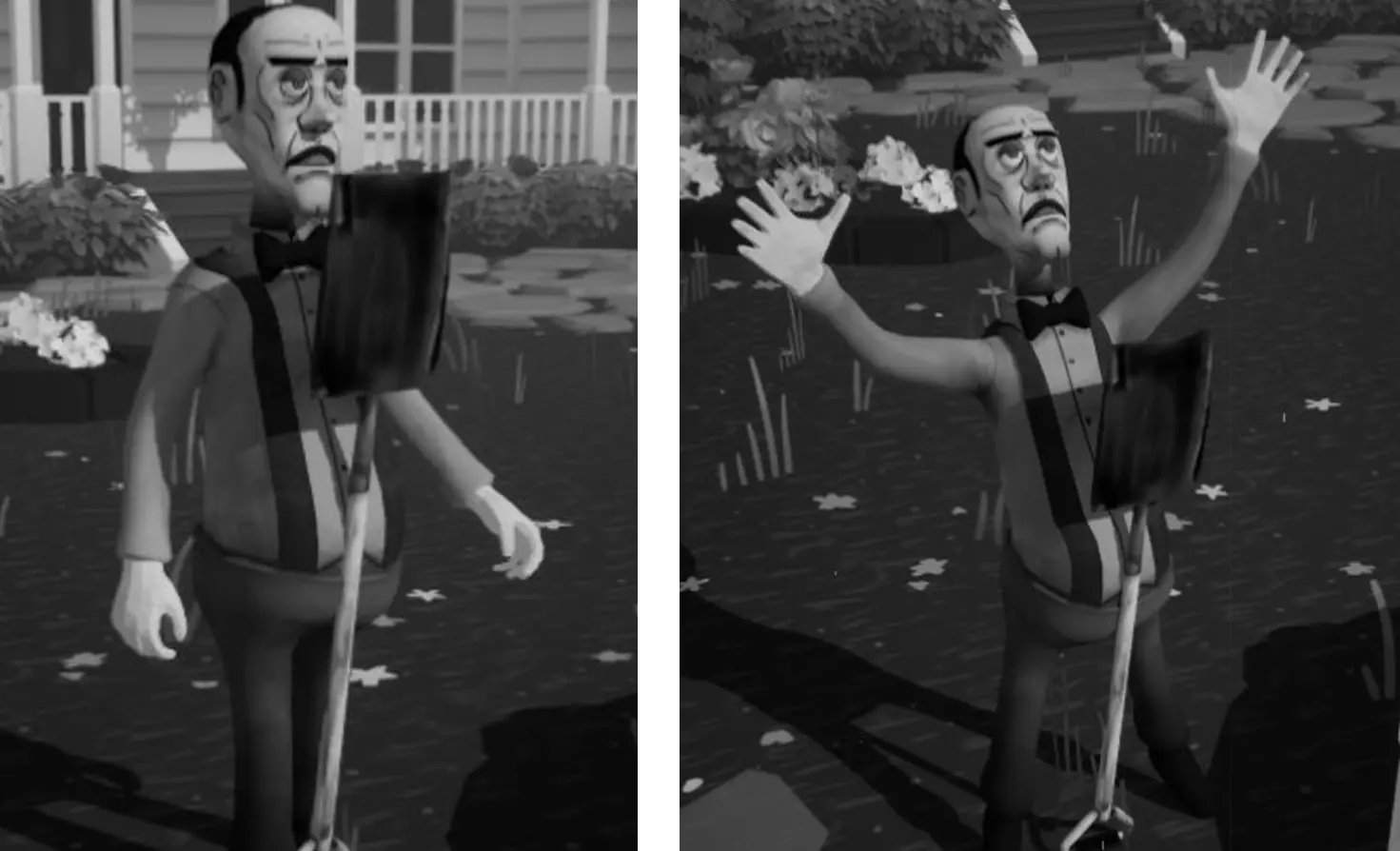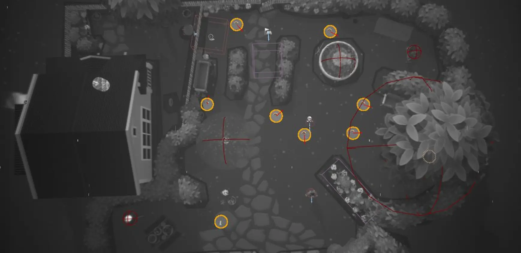 I programmed the target character in the level using a behaviour tree, and set his default activity to patrolling around the garden in a loop. One of the earlier systems I developed was the target's ability to notice items in the level that had been moved. Since the only objects that could move were all possessables, this meant that they were all pawns and Unreal’s perception system could be used to easily track them. The objects themselves would keep track of their state using a movement history component and if the character noticed that an item was out of place, he would pick it up and return it. Initially we thought this might be an interesting way to get the player into inaccessible areas by returning a moved object, but ultimately decided against keeping it.