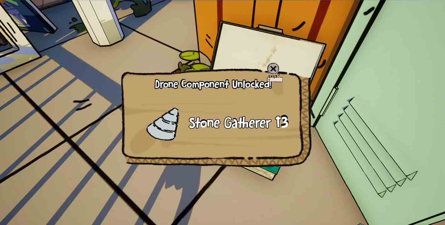 Although the drones that players work with are programmed to be autonomous, they are not very efficient when first found. The player can use resource they earn through farming to craft more effective tools for their drones. Schematics for these tools need to be discovered through exploration, often with the more powerful upgrades hidden inside the more heavily polluted parts of the world.