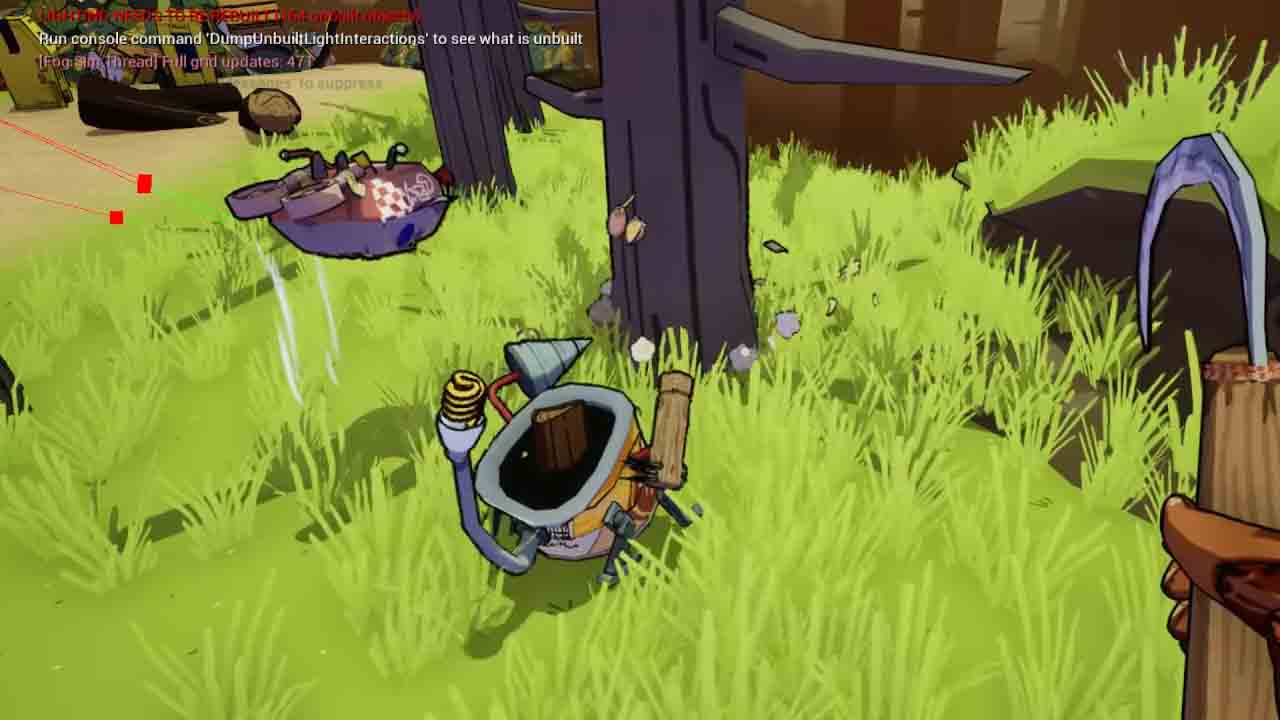 After our artists did their first set dressing pass on the larger map we encountered new issues with removing grass at runtime. All grass was part of a single foliage actor, resulting in up to 5 second freezes when grass was removed via player tools or farming plots. To address this I created a system that divided up the grass into chunks on begin play. This resulted in fewer instances being affected when altering the grass, removing the freeze entirely.