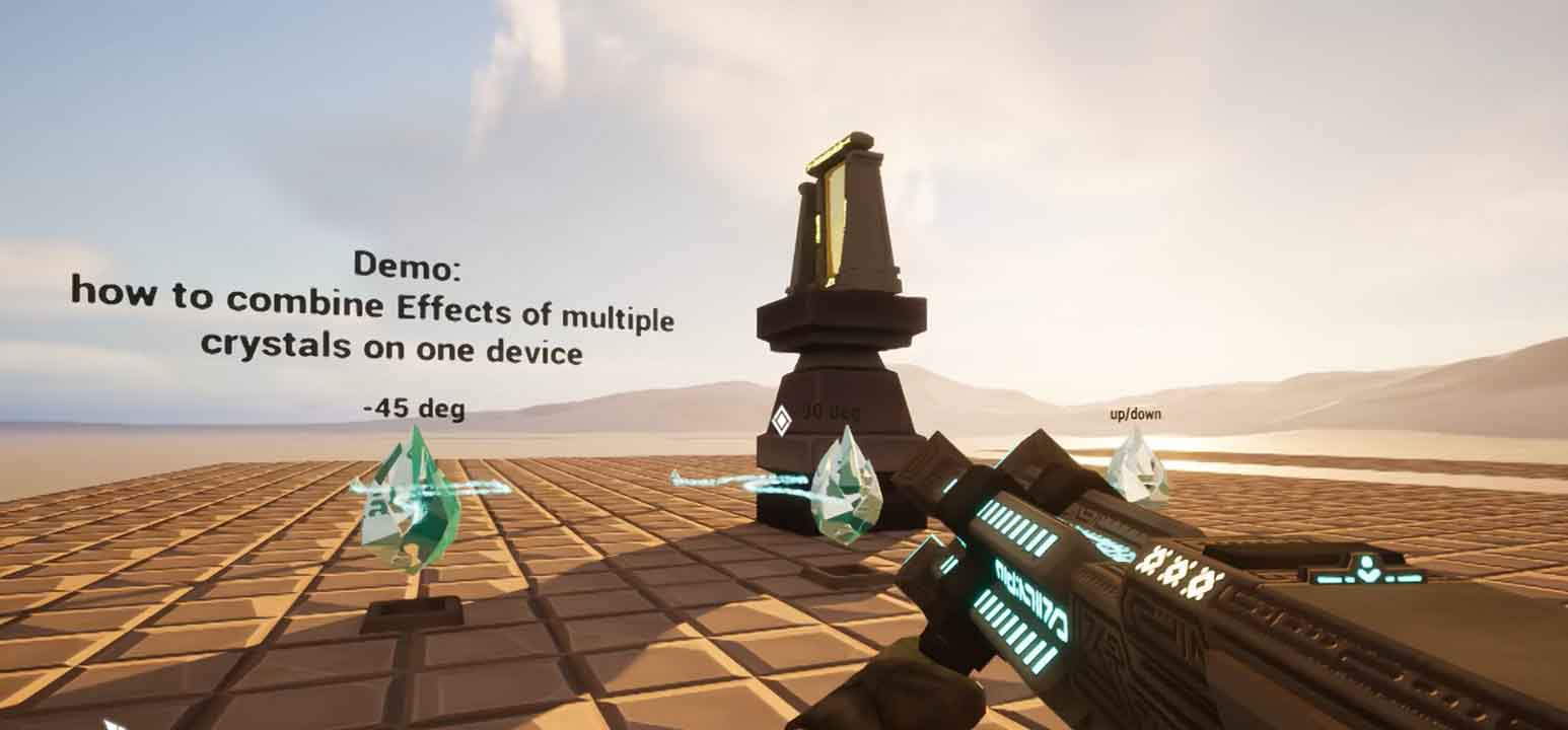 All crystals have a relationship with a puzzle device that listens to the state of that crystal to check if it needs to update it’s state. These devices often physically change the layout of the level such as opening and closing doors or moving pillars. Some devices support being affected by multiple crystals simultaneously, so it’s possible have a crystal that rotates a pillar, and a different one that translates it.