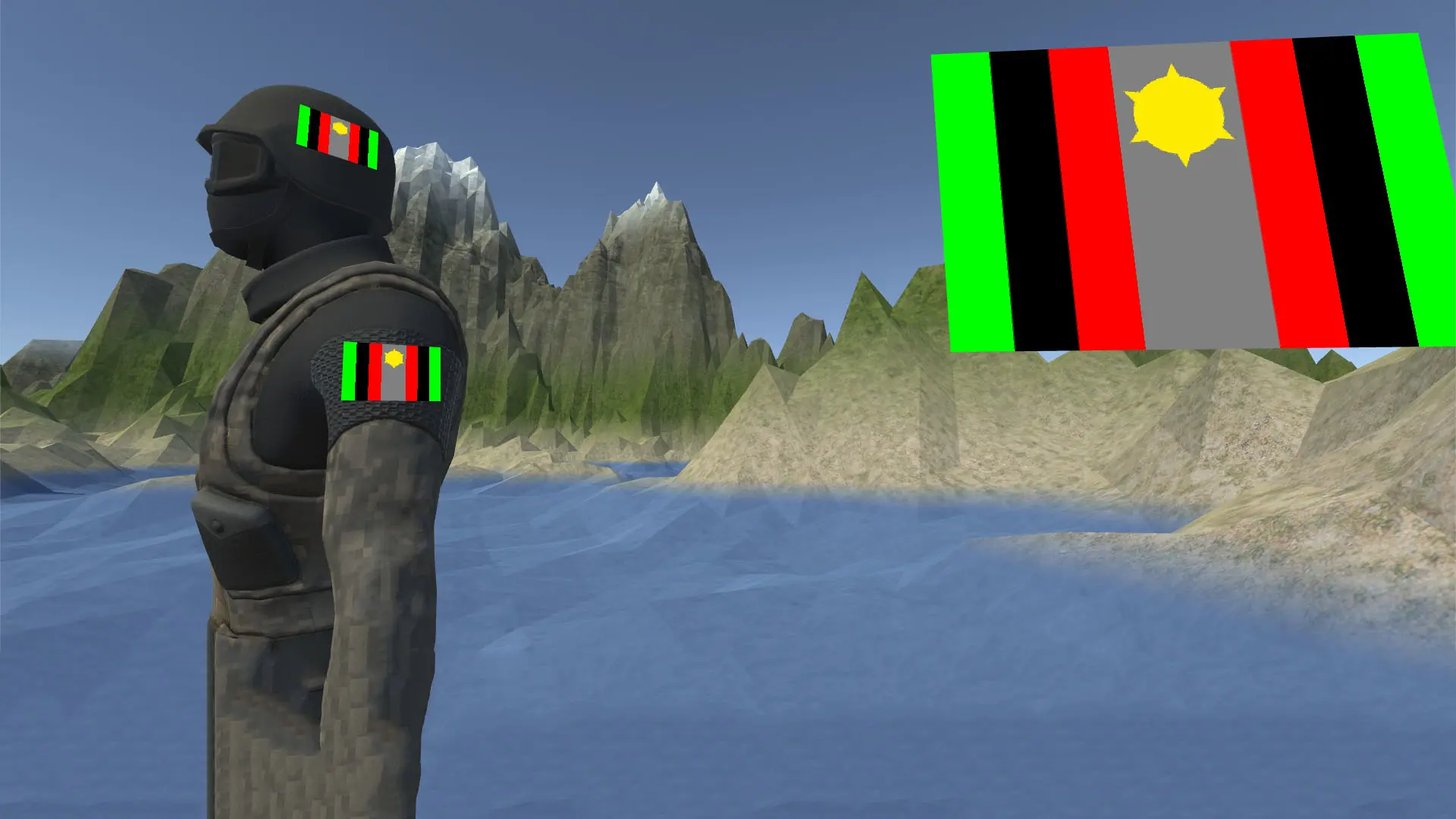 The next prototype was for a flag texture generator built for the purpose of identifying procedurally generated factions. In the context of a game engine, textures refer to the image that is placed over a 3D object or plane. The flags are constructed from a set of shape components that are assigned rules for how they can be combined. A component’s shape is defined by a sequence of points which are then filled by a color so that they image can scale to high resolutions, much like scalable vector graphics. For more complicated shapes that have concave corners, the shapes are split up into subcomponents of convex shapes. For instance, if the flag contains an n-pointed star, the star is subdivided into n triangular arms and the central polygon.