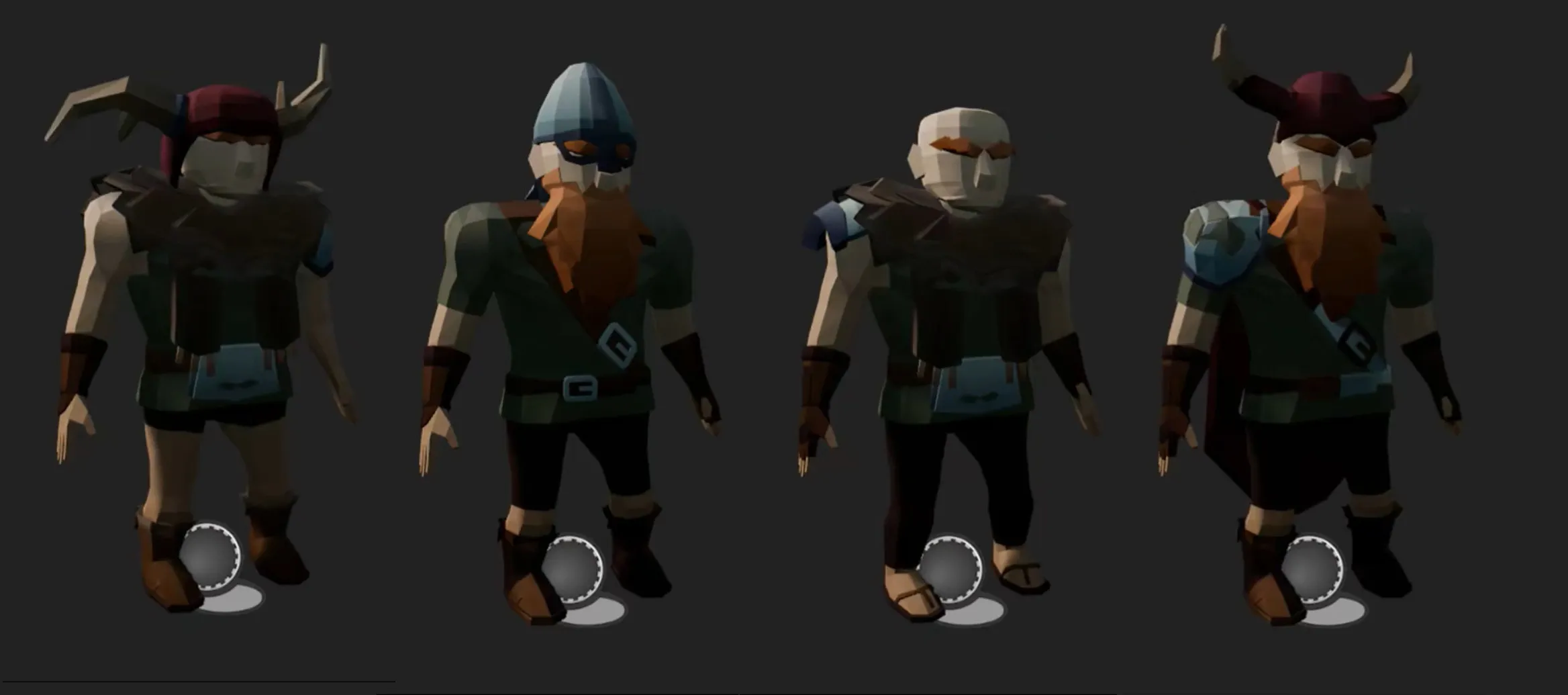 To ensure that each piece of equipment would actually move with the body of the enemy, I had to set the leader poses of each equipment mesh to that of the main body. There were three different enemy types in the game: axe-throwing vikings, spear-wielding Valkyries and boulder-tossing giants, and each of them required a similar set up for their equipment.