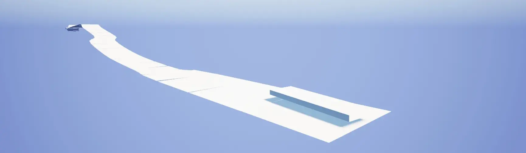 One of my main contributions to the project was programming the game’s procedurally generated levels. The backbone of this system is a spline that gets continuously extended at runtime. It's a more advanced version of the spline-based levels I had made for Train Heist a year or so prior. Each point is given a slightly random offset position from the preceding point to give the generate level the impression of a naturally winding river. The river itself and adjacent banks are constructed from a series of meshes that are curved to match the direction of the spline.