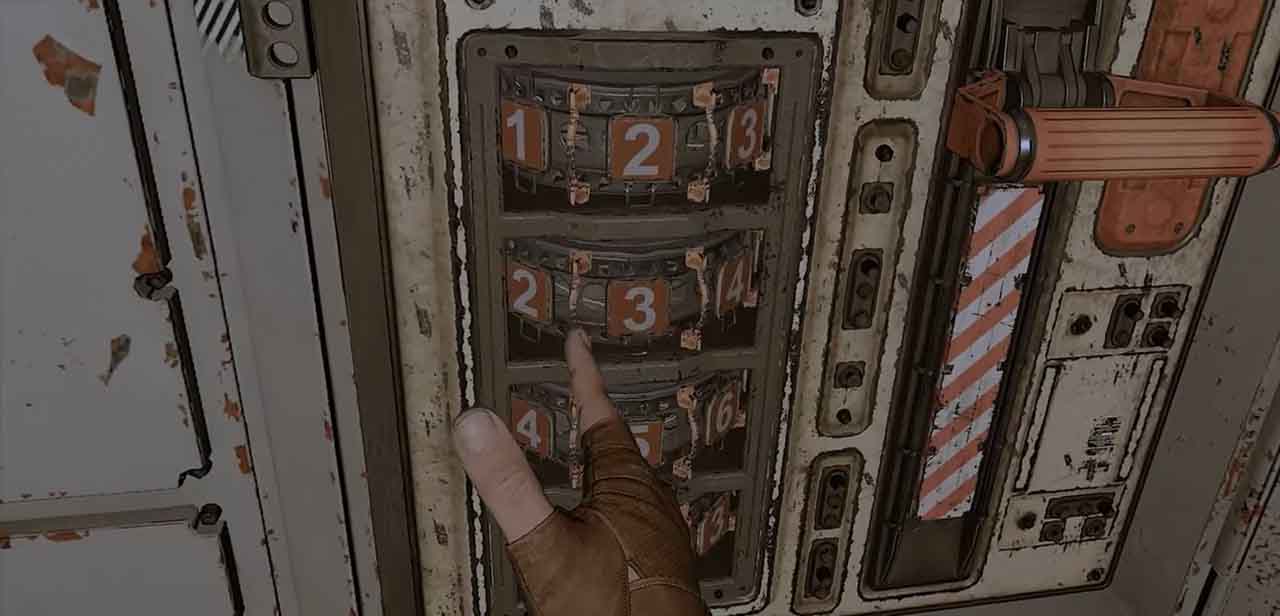 Oftentimes these objects serve as puzzles that the player must physically interact with to solve. In the case of the puzzle below, the door that is pulled open by the player must first by unlocked using a key that is physically inserted and turned inside the door’s lock. Behind the door are series of four rotating dials and a lever that can be grabbed and moved, but is physically blocked by a barrier until the combination is solved. To really nail down the feel of the dials, I created a child class of Unreal’s physics constraint component with the additional functionality of snapping to an arbitrary number of points by updating the constraint’s angular driver. Various exposed variables allowed for fine tuning this effect such as the influence of dead zones. Similar to the items, fixed interactables such as this also need to account for save and load operations.