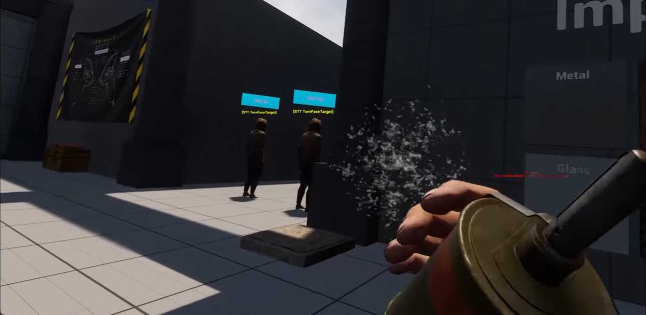 Much of what I worked on when I started at Mighty Eyes were items that the player could pick up and manipulate. Some of my first tasks were to set up hand poses for grabbing simple, static mesh objects like bottles and ammo containers. Before long I was reviewing and creating my own items that had more complex functionality.